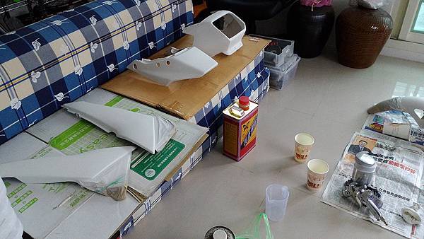 收到的新殼素材僅有塑膠原色,用300號砂紙打磨後便直接上色漆,有加珍珠銀粉,但效果似乎不明顯